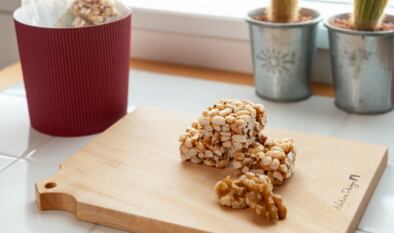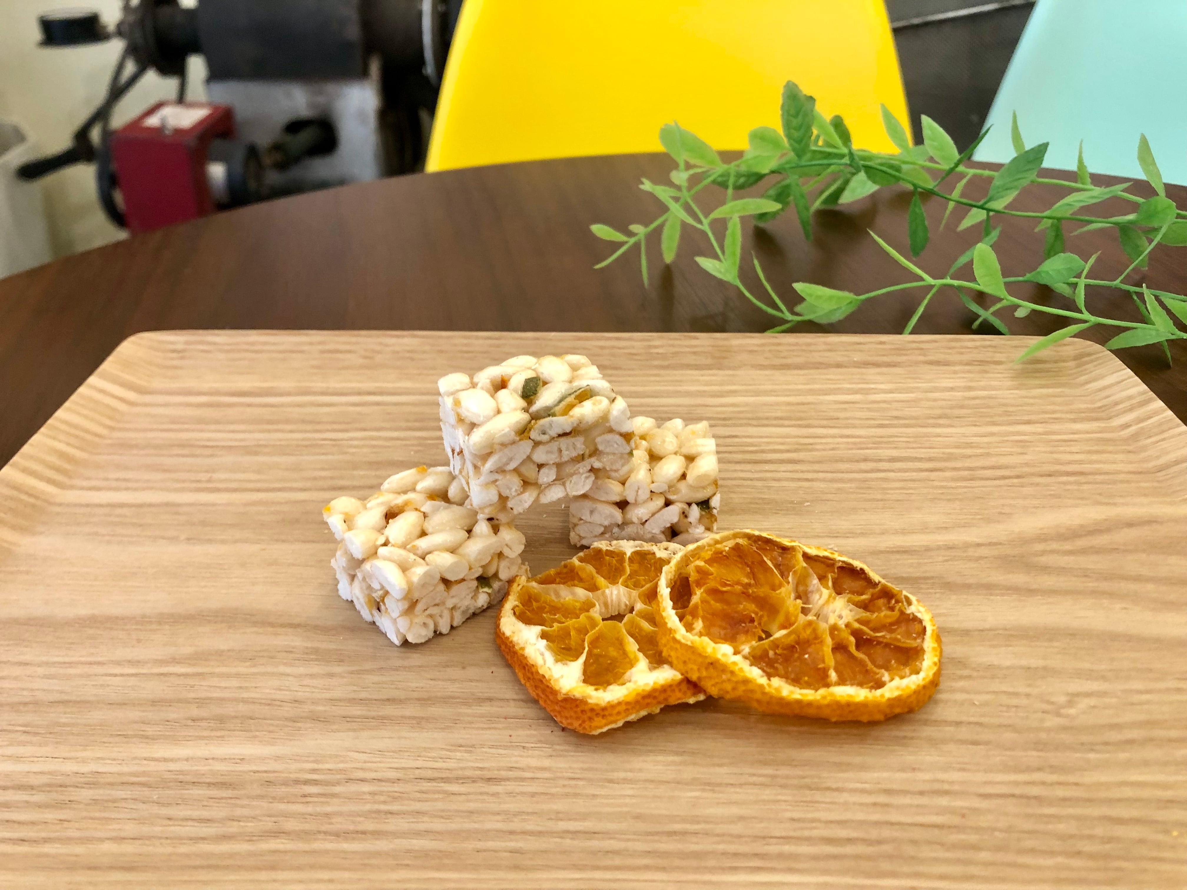 玄米のポン菓子を甜菜糖でおこしにしました。